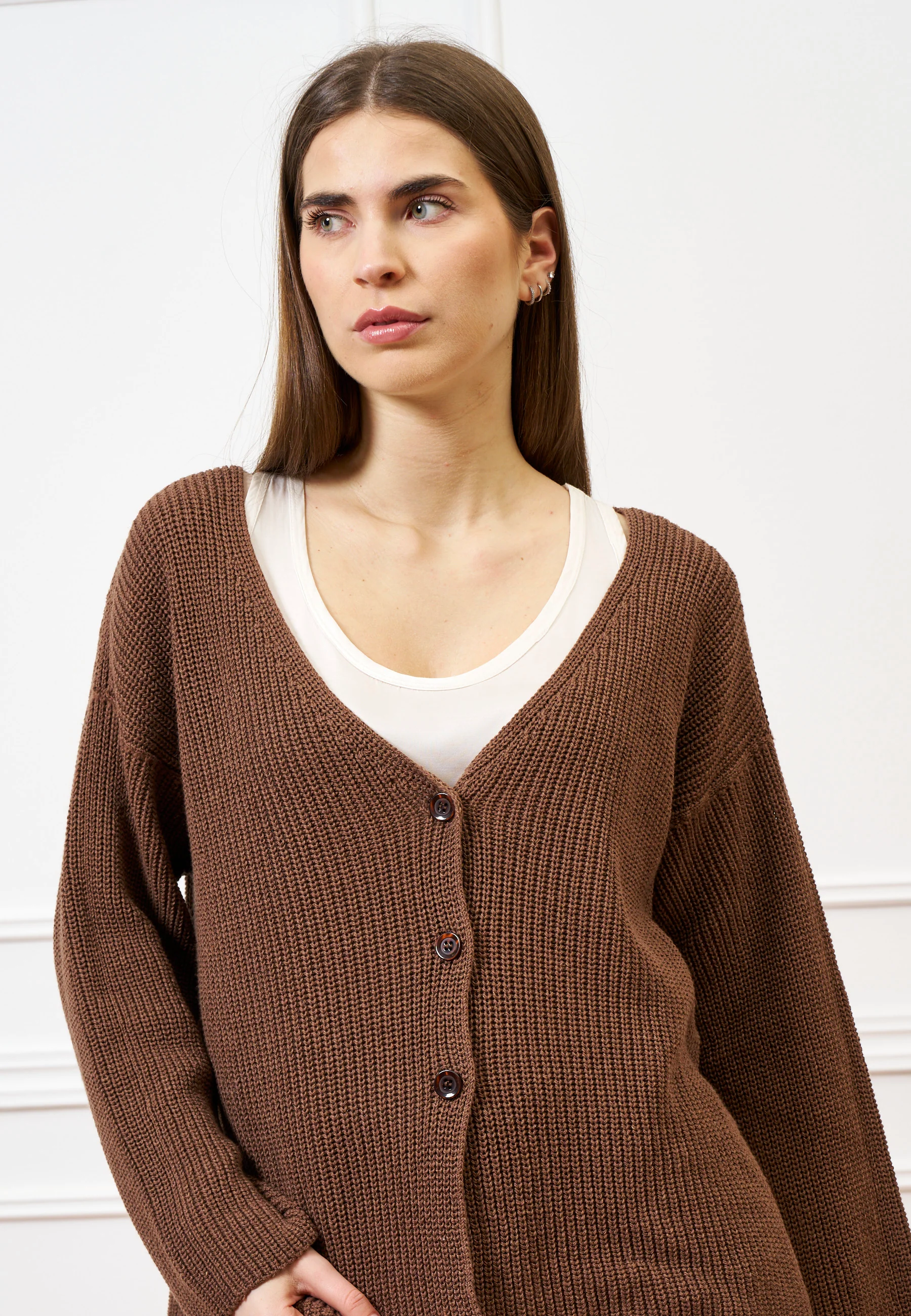 Cardigan ampio con spacchi - MARRONE