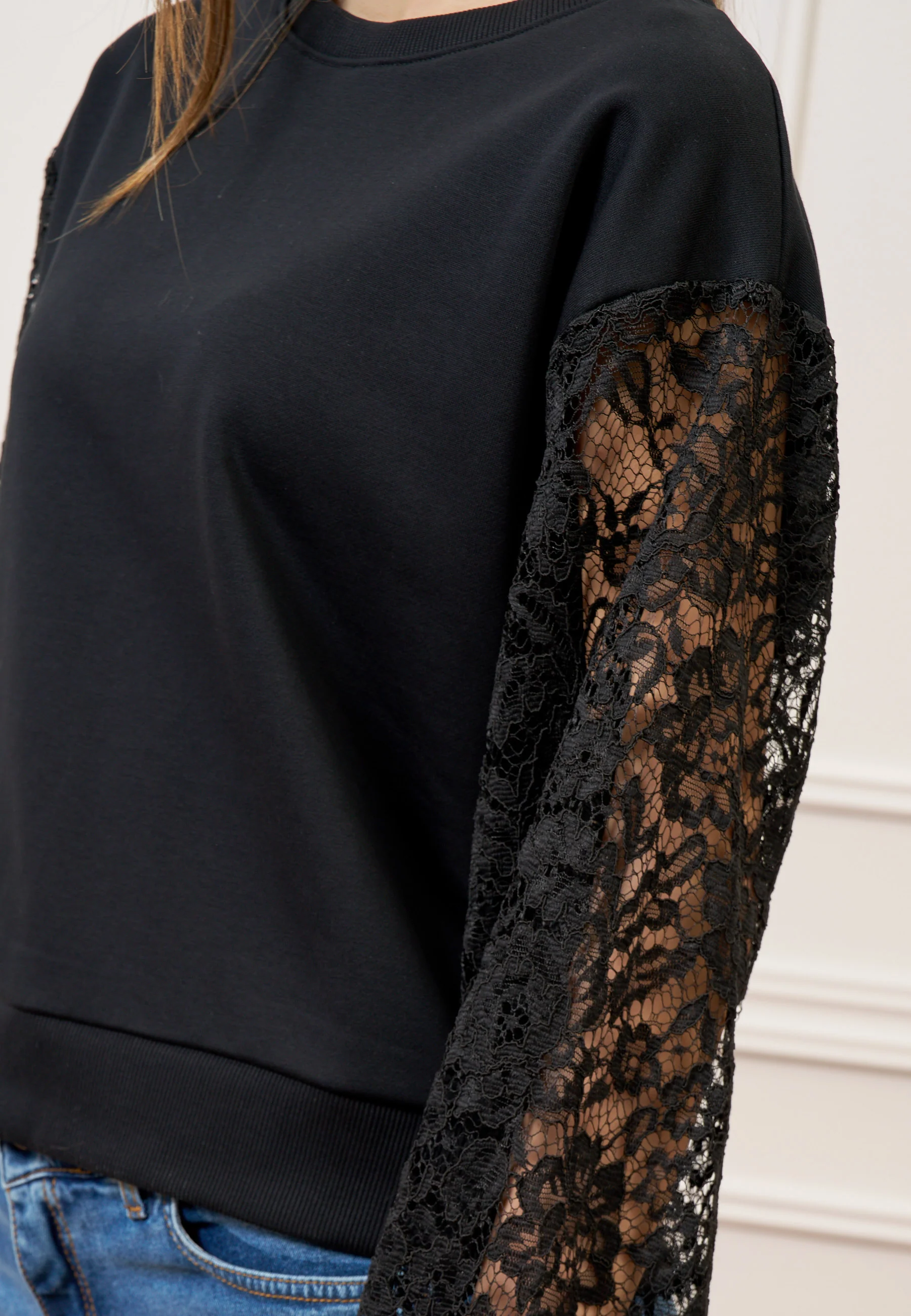 Felpa con maniche in pizzo - NERO