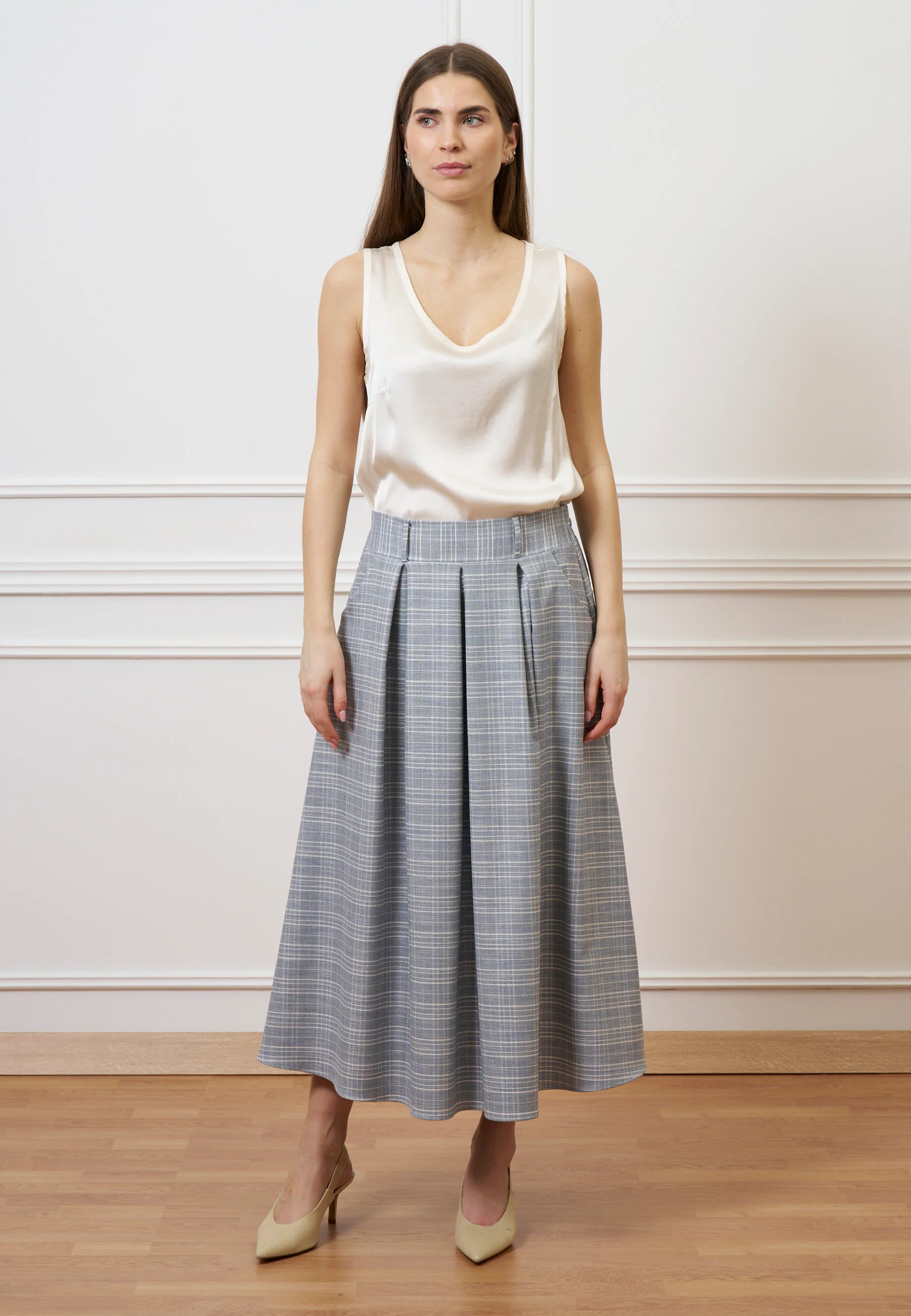 Accompagna la figura con un movimento armonioso, grazie al tessuto strutturato e al motivo a quadri.