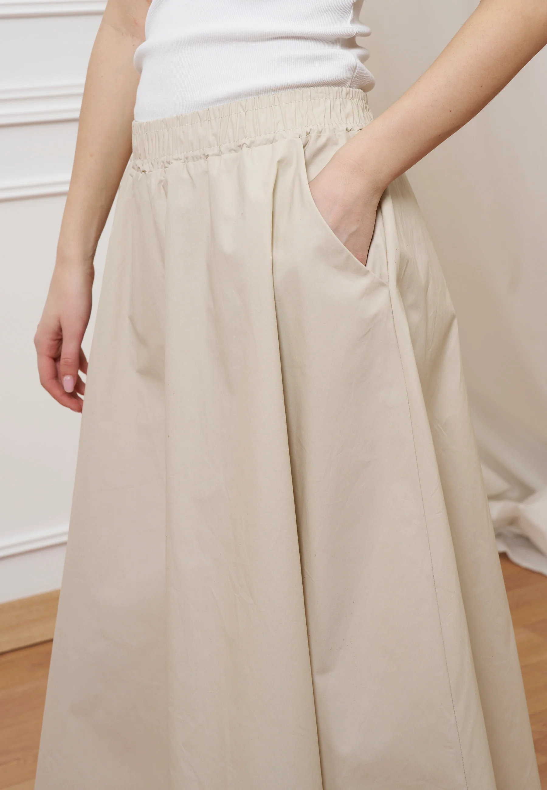 Gonna midi con elastico in vita - BEIGE