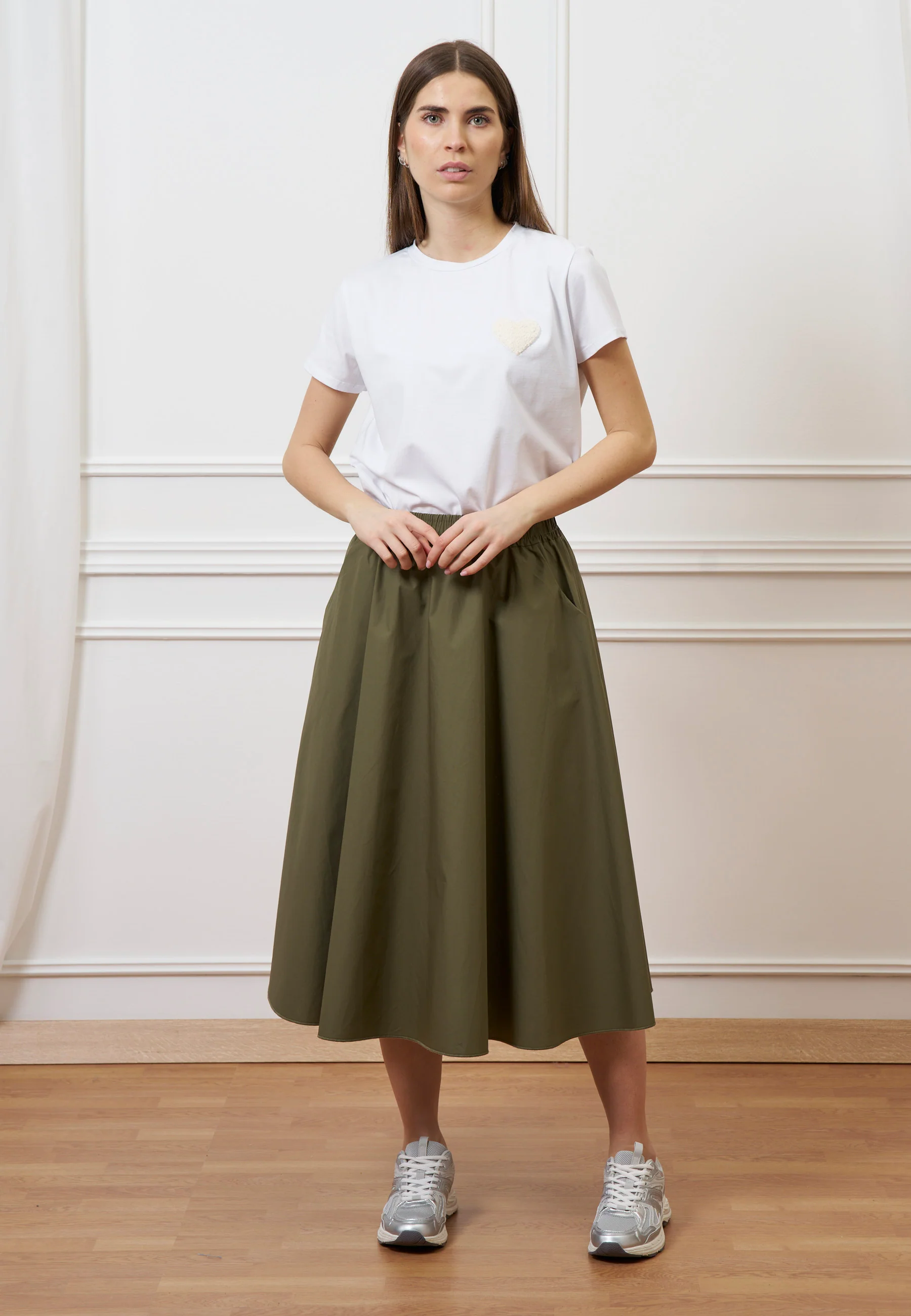 Gonna midi con elastico in vita - MILITARE