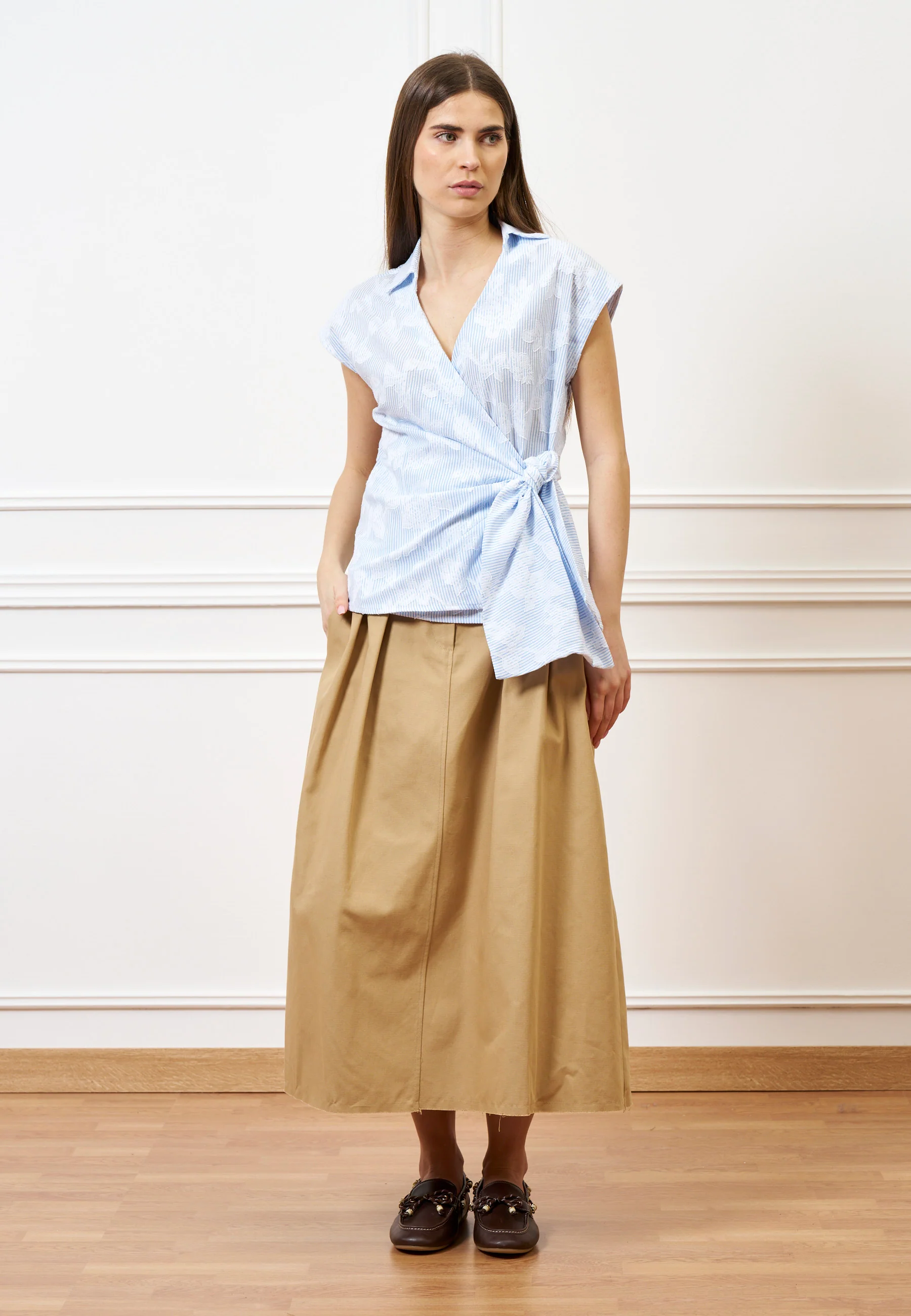 Realizzata con cura in Italia, è un capo versatile e moderno, perfetto per creare look eleganti e femminili, anche in abbinamento alla giacca sahariana coordinata.