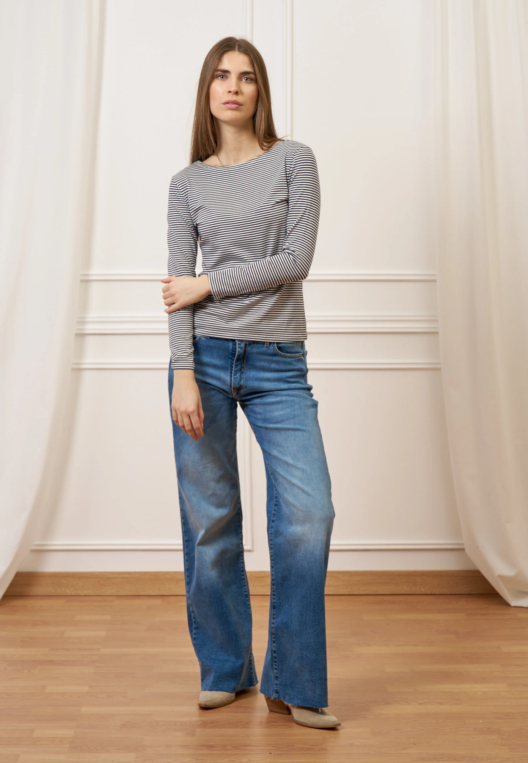 Design pulito e senza tempo definiscono questa t-shirt a righe con scollo a barca, realizzata in jersey morbido che accompagna la silhouette con naturalezza.
