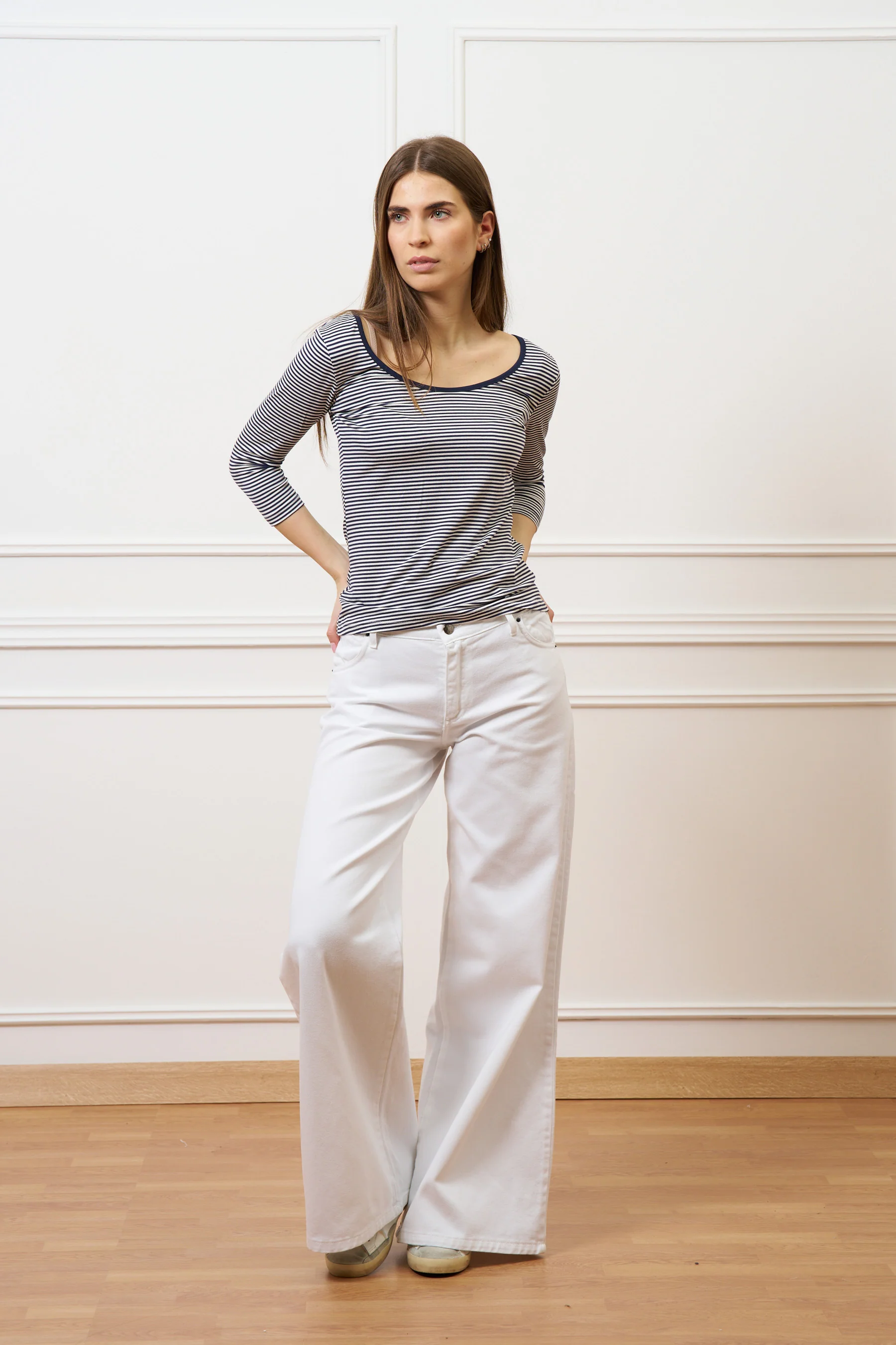 T-shirt a righe scollo bordato - AVORIO/BLU