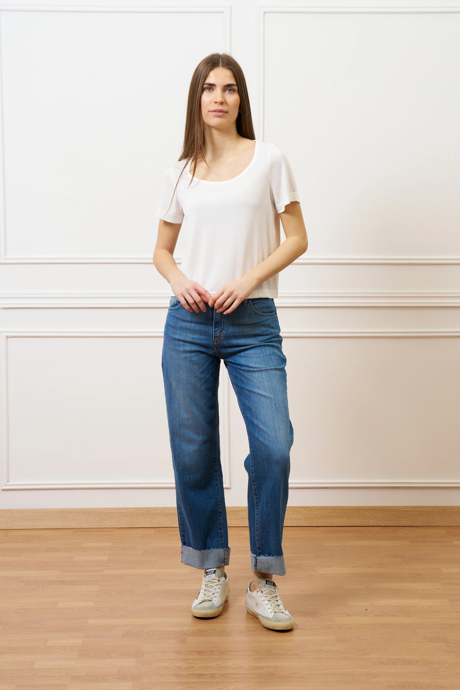 T-shirt scollo ampio in modal - AVORIO