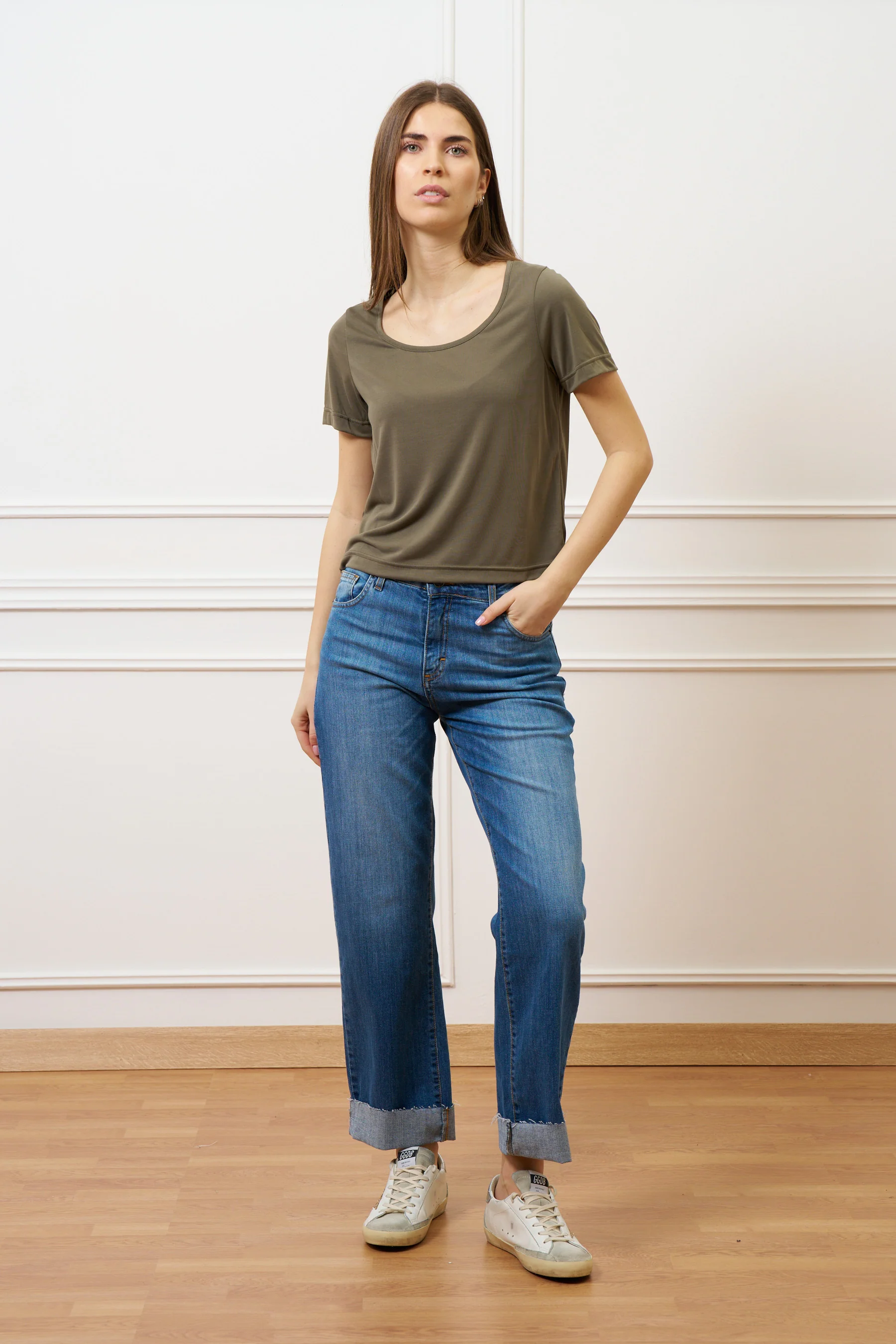 T-shirt scollo ampio in modal - MILITARE