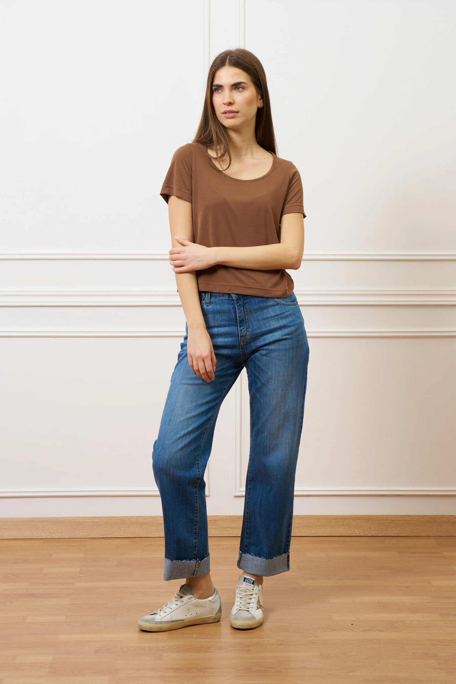 T-shirt scollo ampio in modal - TABACCO—
